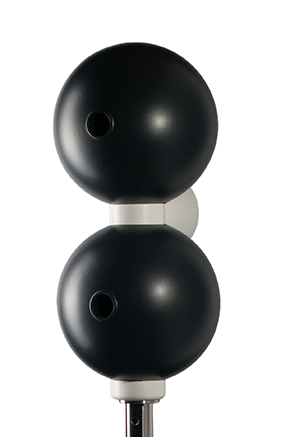 3. Aufgrund ihrer aktustischen Vorteile wurde die Kugel als Gehäuseform gewählt. Verschiedenste Testversionen in Holz, Metall, Stein, Kunststoff und Keramik wurden aufgebaut und miteinander verglichen. Die Vorteile von hochwertiger Keramik waren nicht nur akustisch sondern auch bezüglich des Designs eindeutig.